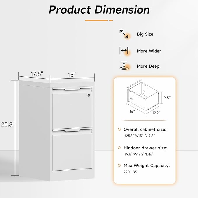 - 🔖【SUPER FUNCTIONAL VERTICAL FILING CABINET】: Our this file cabinet has two large drawers with 15.7 inches depth, which provides you with large enough storage space. And it is equipped with adjustable hanging rods to store different types of files, such as letter, legal, A4, F4 size folders. It is perfect for you to customize the way you organize your files!