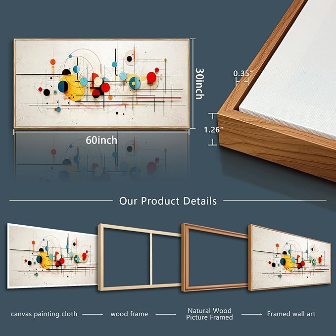 hyidecorart Wall Art For Living Room Large Wood Framed Decorations For Bedroom Room Modern Office Wall Decor Color line Abstract Wall Painting Mural Canvas Prints Pictures Artwork Home Decor