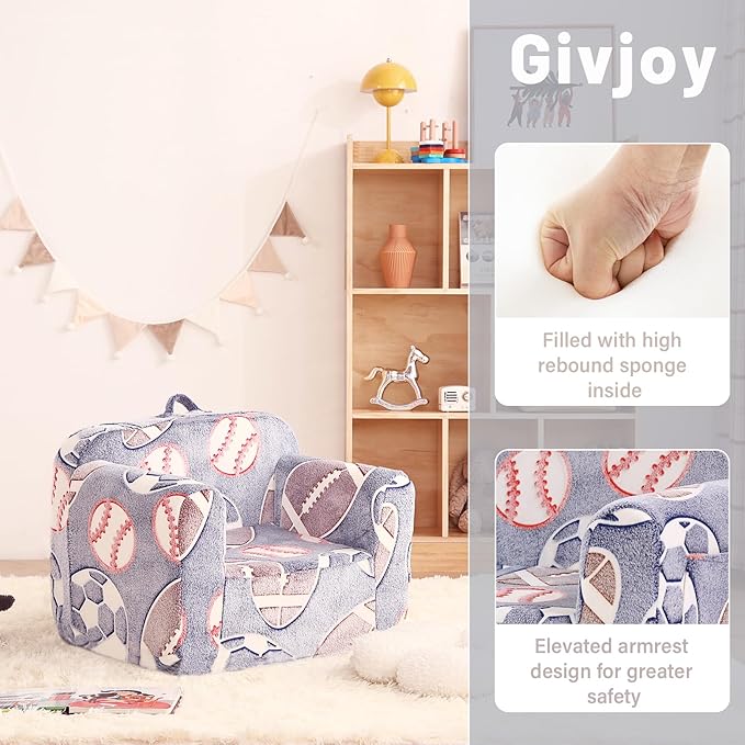 Toddler Chair Plush Kids Couch, Comfy Kids Sofa Toddler Lounger Chair for Bedroom, Convertible Toddler Couch for Girls and Boys, Reading Chair for Kids