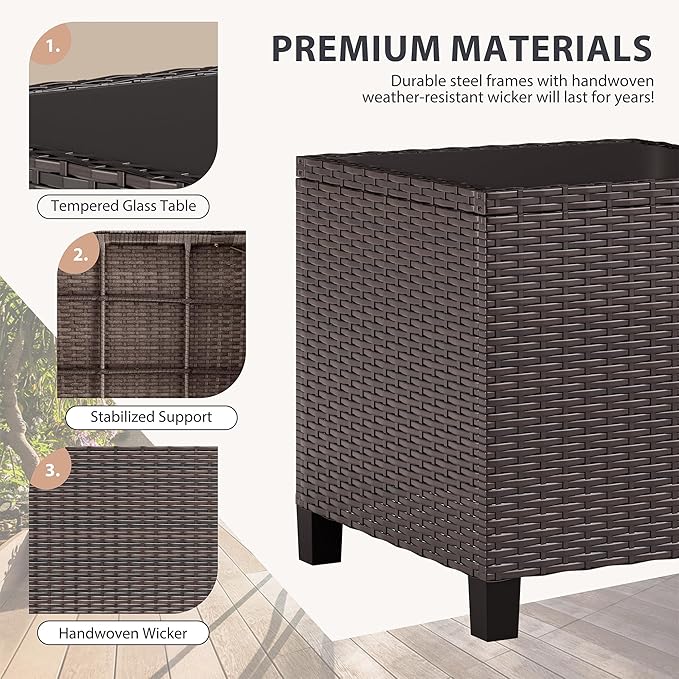 - 【Advanced Rattan and Frame】 Made of commercial-grade hand woven PE wicker and strong powder-coated steel frame, this 3-piece patio set is sturdy and durable. Rust-proof, UV-resistant and waterproof feature also guarantee long-lasting use.