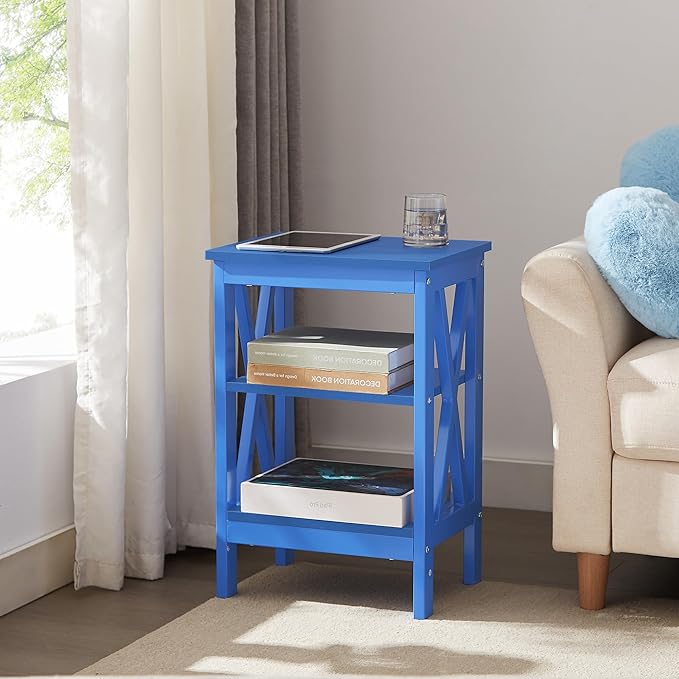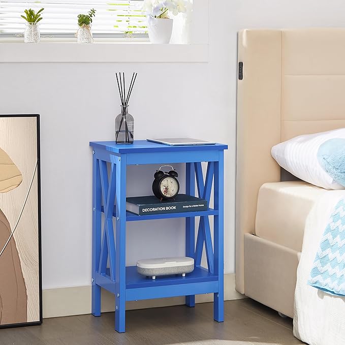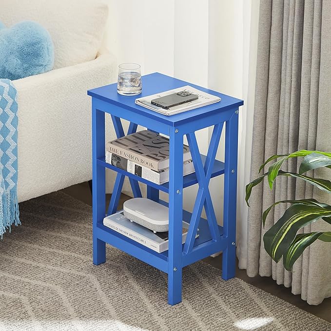 VECELO End Table, Bedside Table, 24" Tall Living Room End Tables, X-Design Reinforced Nightstands, Side Table with 3-Tier Storage Shelves for Small Spaces, Office, Bathroom, Bedroom, Dark Blue