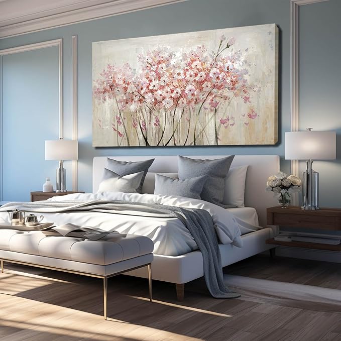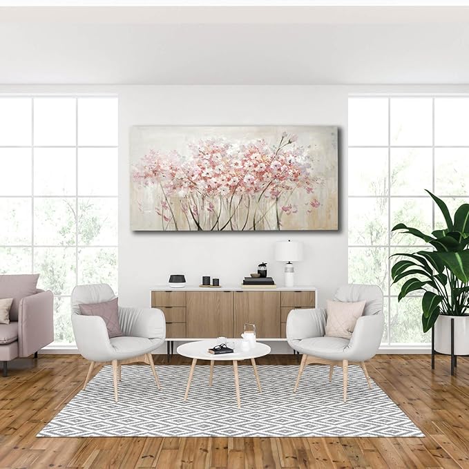 YJYart Home Decor Pink Blossom Hand Painted 30x60 Inch Colorful Wall Art Large Canvas Wall Art for Living Room Bedroom Office Kitchen