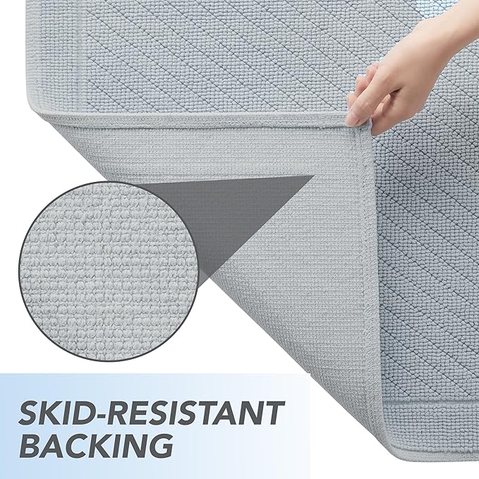 - CRAFTED TO LAST: This stylish bath rug collection is durable and designed with a focus on both aesthetics and functionality. Meticulously woven from strong cotton in a stylish two-weave texture, this rug is also soft and absorbent. This strong woven textile is backed with a rubbery skid-resistant backing, which provides even more durability as well as a safety feature. Its high-quality construction ensures that these rugs will last for years to come.