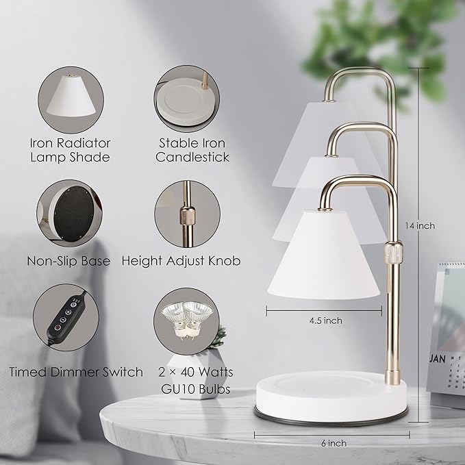 Candle Warmer Lamp with Timer,Adjustable Height Dimmable Candle Lamp,Electric Candle Warmer Lamp with 2 Bulbs,Candle Wax Warmer Compatible with Large Jar Candles,Gifts for Mom,White