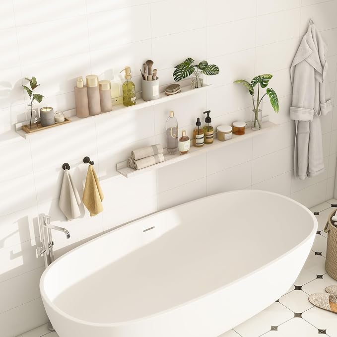 - 【Wall-Mounted Floating Shelves】Transform your living space with these versatile shelves, designed to elegantly showcase home accessories, captivating showpieces, cherished pictures, and lush potted plants. Elevate any room's decor by placing them in unused wall spaces above the fireplace, entryway, vanity, desk, or between windows.