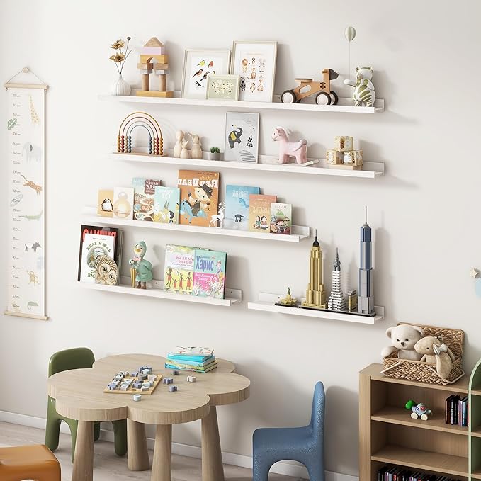 - 【Versatile Shelves Sets】If you find yourself with a plethora of pictures but are unsure how to showcase them, our picture ledge shelves—especially in large sizes—are the perfect solution! Our hanging shelves provide a secure and stylish way to store and display various types and sizes of photo frames in one convenient location, ensuring they stay safely in place without any fears of falling.