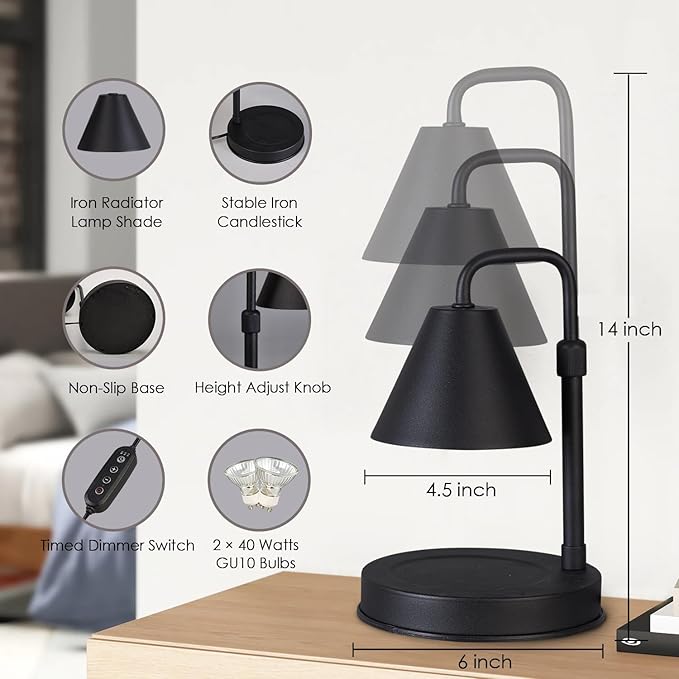 Candle Warmer Lamp with Timer,Adjustable Height Dimmable Candle Lamp,Electric Candle Warmer Lamp with 2 Bulbs,Candle Wax Warmer Compatible with Large Jar Candles,Gifts for Mom,Black