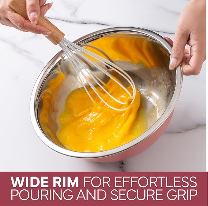 - Wide Rim- For a mess free cooking session, choose our bowls with a wide rim and lip. These features allow messy ingredients like flour, sugar and oil to be added directly into the bowl easily.
