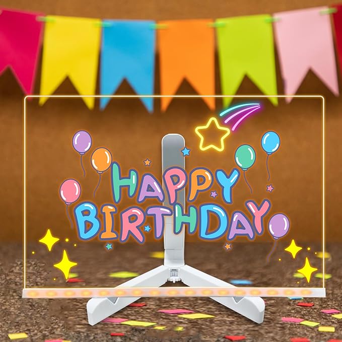 - 【Multi-Purpose LED Note Board 】As a led note board, you can write down your work and study plan, or to-do list even your weekly menu. As a message board, you can leave messages to your family, colleagues or friends. As a creative note glass board, use 7-color pens to draw your favorite works.