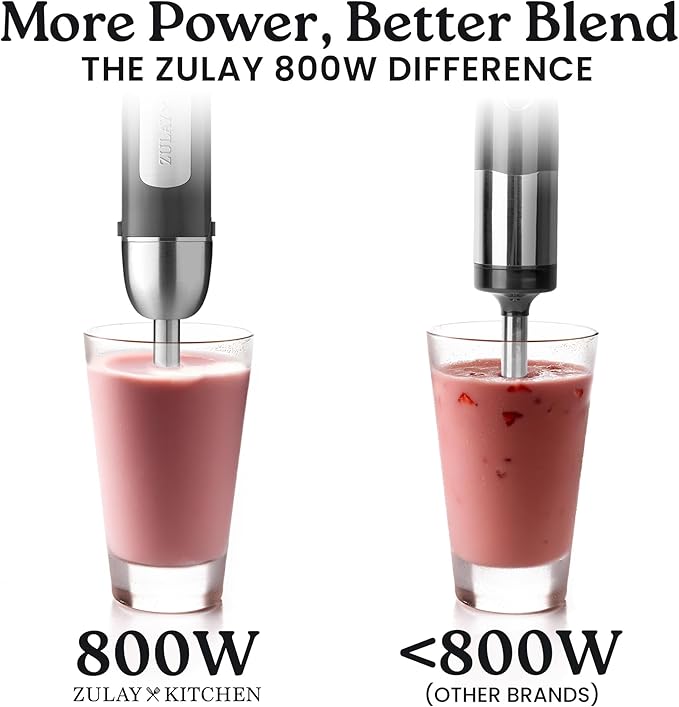 Zulay Immersion Stick Mixer Hand Blender - 800 Watts, Turbo Mode, 5-ft Power Electric Cord, Handheld Portable, Stainless Steel Blades - For Effortless Blending Smoothie, Soup, Baby Food, Puree - Black