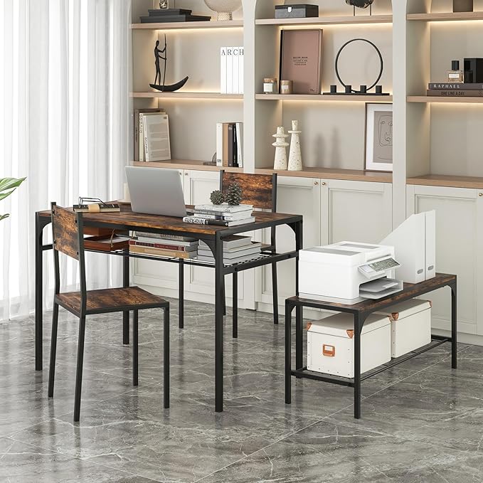 Tangkula Dining Table Set for 4, Kitchen Table and 2 Chairs for 4 with Bench, Additonal Storage Rack, 4 Piece Dining Table Set for Small Space, Apartment