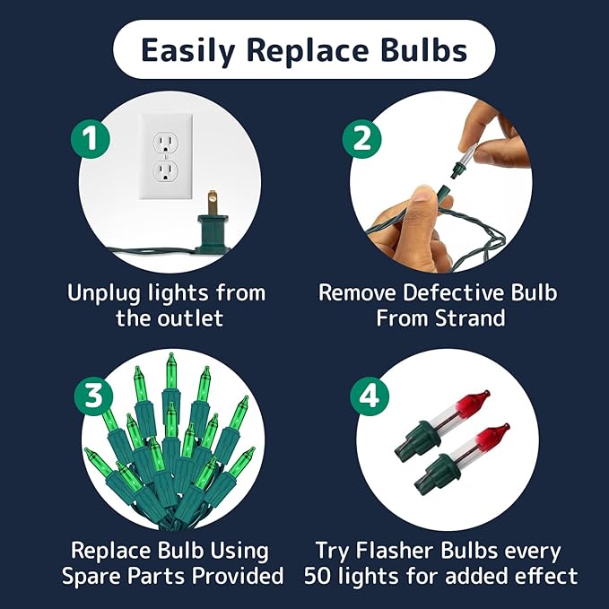 - Add Twinkle Magic: Insert the Green-coated flasher bulb to transform your display with a twinkling effect; ideal for enhancing the charm of warm Green twinkle lights for holiday displays