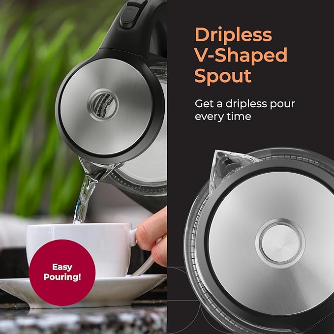 - Enjoy Hot Water – Attractive Borosilicate glass kettle fresh, tasty water to make tea, oatmeal, hot chocolate, instant soup, and coffee. Electric tea kettle designed for home or kitchen.
