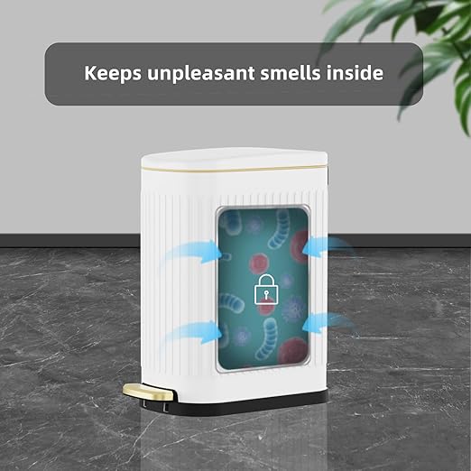 - 【COMPACT DESIGN】This 2.6 gallon step trash can is slim design, only 6.5 inch wide, the rectangular shape is the perfect size for inside cabinets, under counters, under sinks and other small spaces.