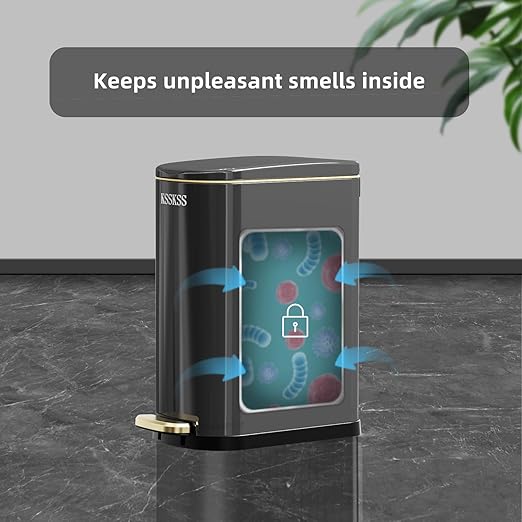 - 【EASY CARE】Crafted from robust SUS304 stainless steel with a durable finish and fingerprint proof feature, ensuring your garbage bin remains cleaner for longer. The interior liner bucket is constructed from durable plastic and can be easily rinsed with mild soap and water.