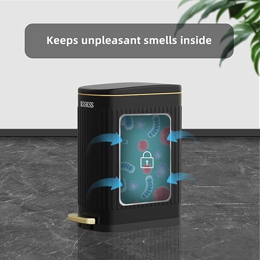 - 【COMPACT DESIGN】This 2.6 gallon step trash can is slim design, only 6.5 inch wide, the rectangular shape is the perfect size for inside cabinets, under counters, under sinks and other small spaces.