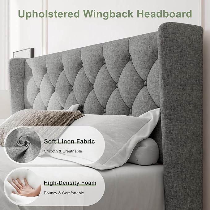 - Elegant Wingback Design: Featuring a sophisticated wingback headboard with classic button tufting, this bed frame adds a touch of luxury to any bedroom while blending seamlessly with various decor styles