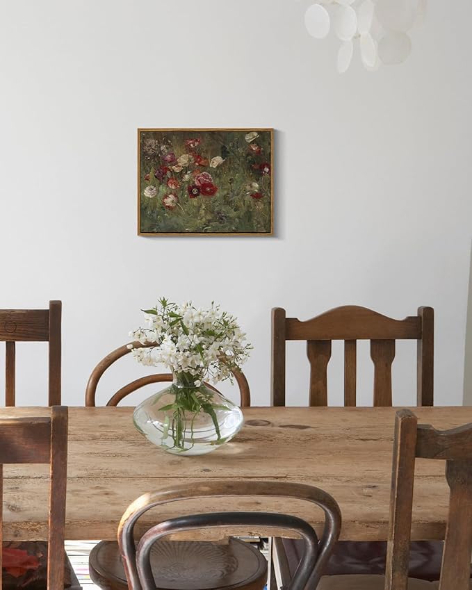 InSimSea Framed Canvas Wall Art Vintage Decor, Classical Flower Paintings Vintage Wall Art for Living Room, Retro Nature Floral Art Work Wall Decorations for Bedroom Home, 11"x14"
