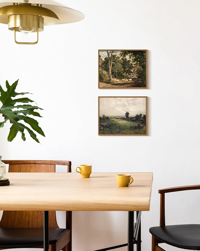 InSimSea Framed Canvas Wall Art Vintage Decor, Room Decor Classical Countryside Landscape Watercolor Painting Canvas Prints Wall Art for Living Room Badroom Farmhouse Bathroom Decor, 11"x14"