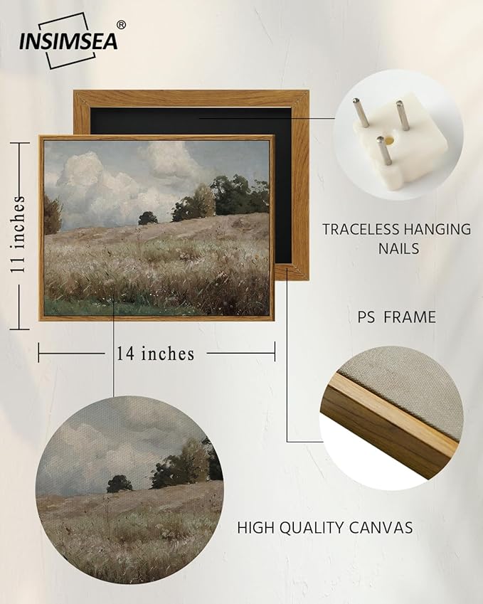 - Ready To Hang : Measuring 11x14inch, this framed canvas art wall decor is designed for convenience. It comes with two hooks, making it effortless to hang. Before nailing the hook onto your wall, please refer to the installation instruction image provided. Please note that this item is handmade, so a size error of about 0.2 inches may occur.