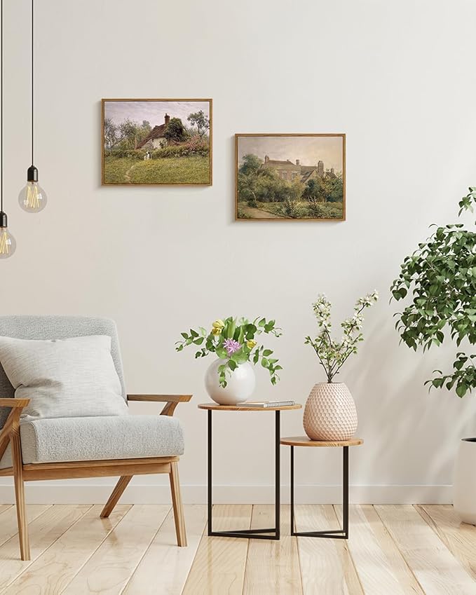 InSimSea Framed Canvas Wall Art Vintage Decor, Landscape Wall Art Prints, Old Cottages Countryside Landscape Wall Art, Rustic Farmhouse Wall Decor for Bedroom Living Room, 11"x14"