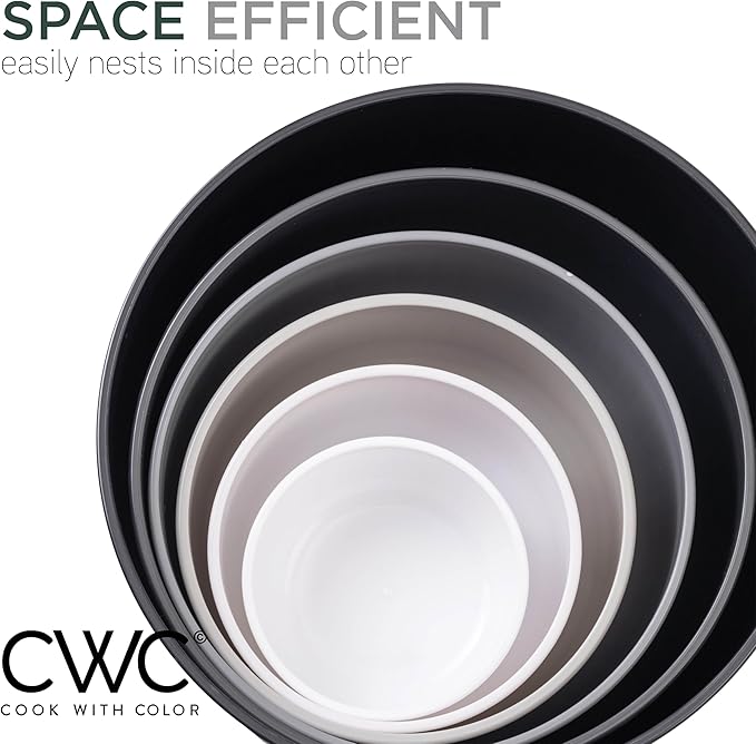- Cook with Color 12 piece plastic mixing bowl set - non slip bowls with lids; easy to clean, sturdy mixing bowls.