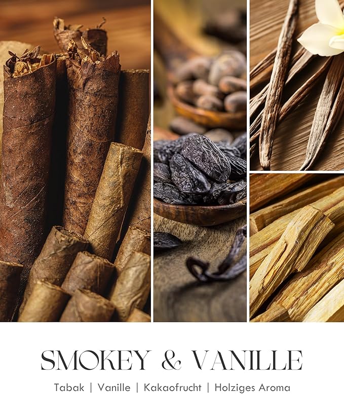 - Smoke & Vanilla Candles for Home Scented: Embark on a sensory journey with AOOVOO vanilla men candles, tailored for the modern gentleman. Opening with notes of tobacco and spices, it transitions seamlessly into a heart of vanilla, cocoa, tonka bean, and tobacco flower. The dry down reveals a comforting blend of dried fruits and woody undertones, creating an ambiance of refined elegance and warmth