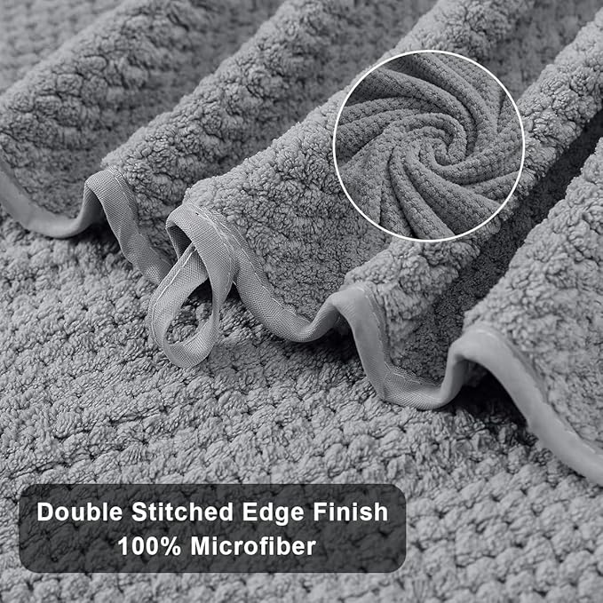 - SOFT TOUCH AND DURABLE:8 pack towel set have a reinforced double stitched hem and natural weave guarantees durability and strength. luxury towel set are made up of 100% microfiber and soft fleece plush material which allows them to be extremely absorbent,soft and fluffy.The soft touch of these luxurious and remarkably plush towels allows you to feel spa grandeur in the comfort of your own home.