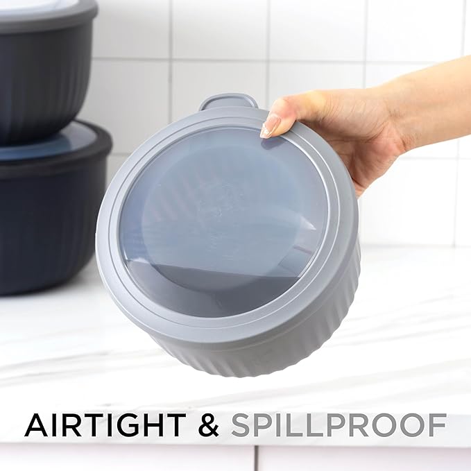 - Nesting Bowls and Sturdy Lids for Easy Stacking - Our ombre colored bowl set nests for easy storage and convenience, a functional set that saves you space. The strong lids allow for staking in the fridge and freezer, and the clear top allows for easy visibility.