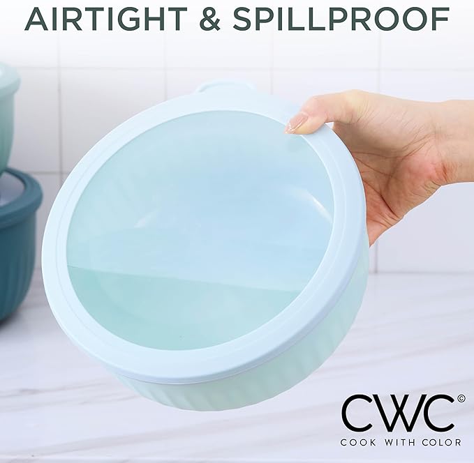 - Cook with Color 12 piece plastic mixing bowl set - non slip bowls with lids; easy to clean, sturdy mixing bowls.