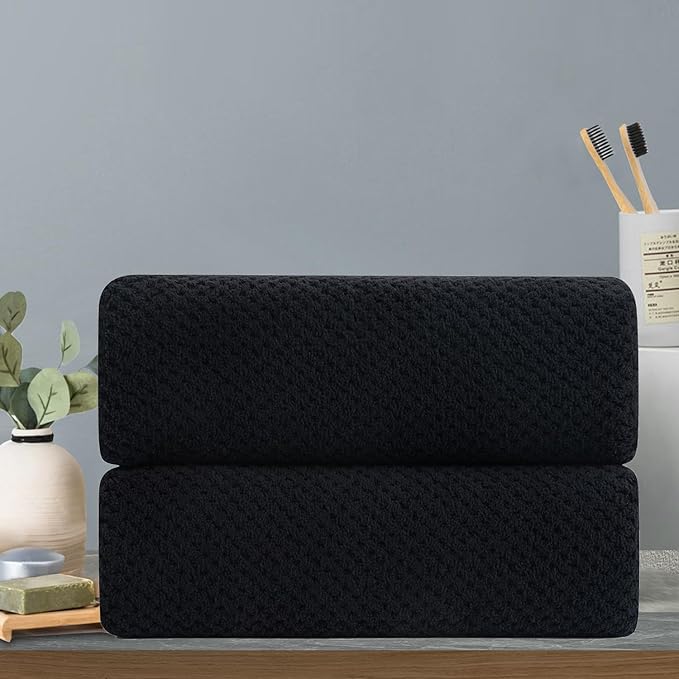 Hand Towels Set 2 Pack-16“x31”,Ultra Soft Microfibers Bathroom Towel Set Highly Absorbent Quick Dry Luxury Premium Towel Lightweight Durable Hand Towel Collection for Hotel Spa Gym Kitchen,Black