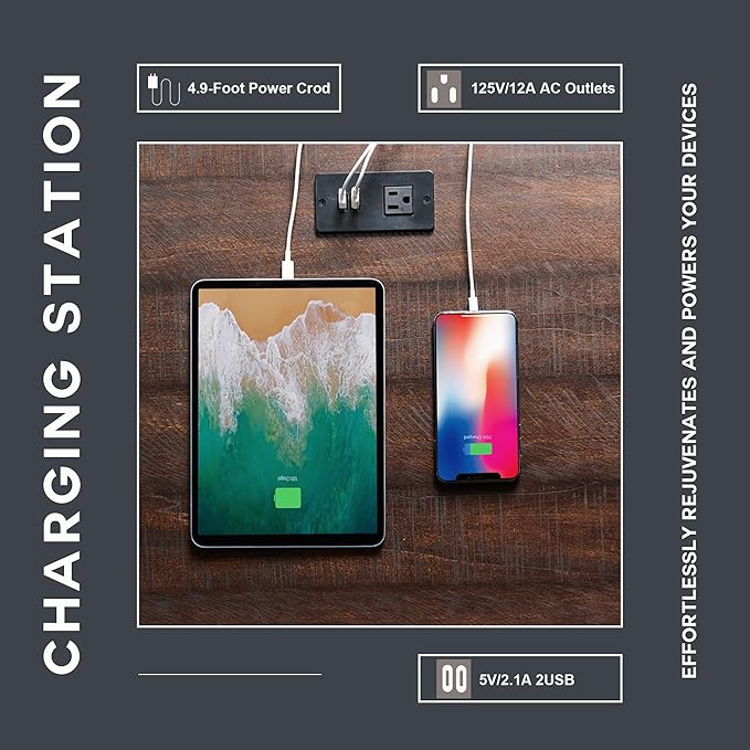 - Charging Station Design: This end table with charging station Combining the modern farmhouse and traditional farmhouse design concepts, convenient charging station for your electronic devices and table lamps. The top panel features two USB ports and one AC outlet, while the back panel includes cable management holes with a 2.3" diameter. This design provides a spacious and tidy desktop while keeping your devices charged and within reach.