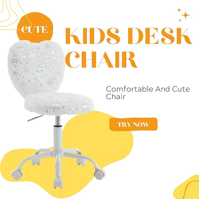 Kmax Kids Reading Chair, Rolling Cute Desk Chair for Girls Swivel Office Chair with Wheels & Heart Back Adjustable Childrens Vanity Chair for Bedroom Reading Room - Fur, Snowflake