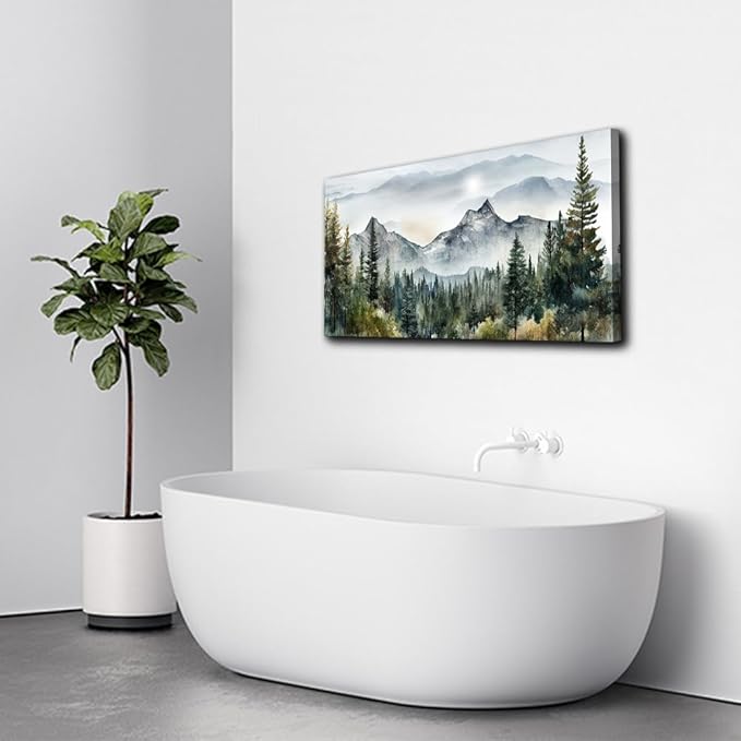 Lapremoly Canvas Wall Art for Living Room, Bedroom, Office - Modern Abstract Mountain Scenery Paintings, Misty Forest Landscape Pictures - Home Decorations Artwork