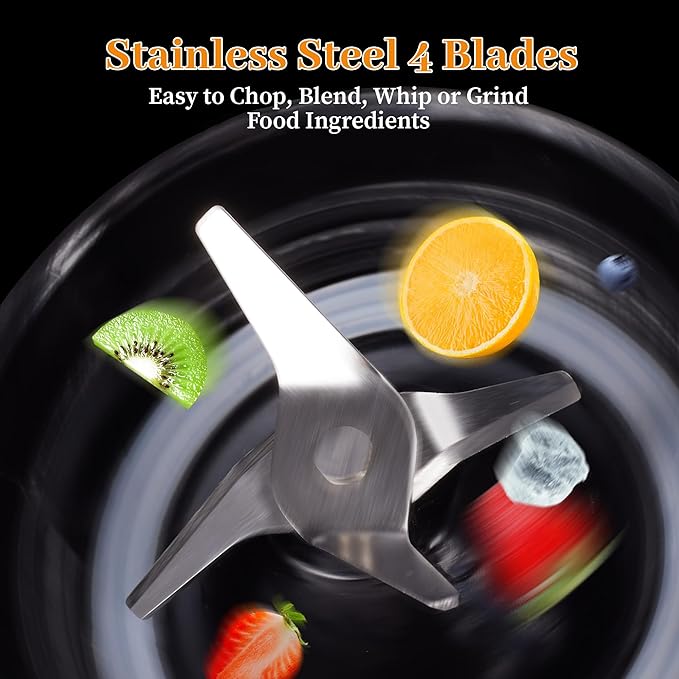 - Stainless Steel 4-Point Blade: The JUSANTE Kitchen Blender is equipped with a durable stainless steel 4-point blade that effortlessly cuts through ingredients for smooth, consistent blending. From frozen fruits to leafy greens, this blade ensures a thorough blend every time.