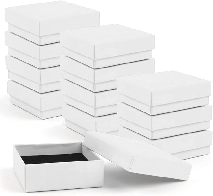 Gift Box Necklace Earring Ring Box Gift Box,12 Pieces Square Cardboard Jewelry Gift Boxes,Cotton Filled Cardboard Paper Jewelry Box Gift Case (3.5x3.5x1.25 Inches) (White)