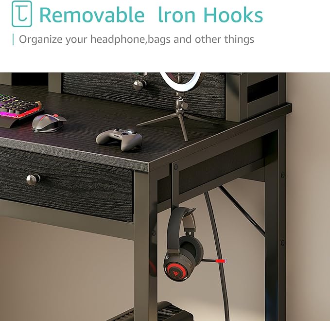 - Modern Simple Style Design: Computer desk with 4 ππππ§ππ πΏπ§ππ¬ππ§π¨, the addition of this feature renders the desk lightweight and facilitates its mobility. The desk with small drawers and side hutch offers storage solution to your home office supplies. Table with headphone hook, it can organize your headphone, bags and other things.