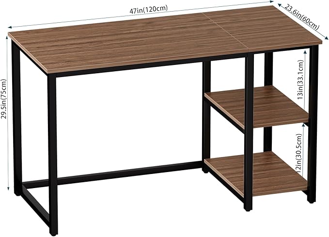 SINPAID Computer Desk 47 inches with 2-Tier Shelves Sturdy Home Office Desks with Large Storage Space Modern Gaming Desk Study Writing Laptop Table, Brown