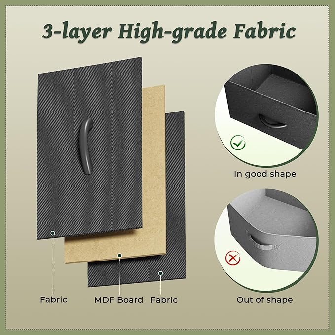 - 【Easy Assembly】No need to stress about setup! Our fabric dressers for bedroom includes all parts and detailed instructions for hassle-free assembly. You'll have it ready to use within 30 minutes, ensuring a smooth experience from start to finish. Crafted with high-quality fabric, a durable wooden top, a robust metal frame and solid P2 Particle Board. Thickness of P2 Particle Board: 12mm; Thickness of Steel Tube: 15mm