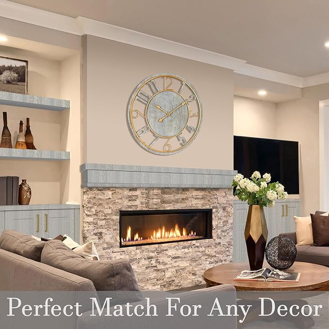 - Giant Clock for Wall: This giant clock for wall is perfect for those who appreciate grandeur. At 24 inches, it is an impressive timepiece that blends seamlessly with big wall clocks for living room decor, adding sophistication.