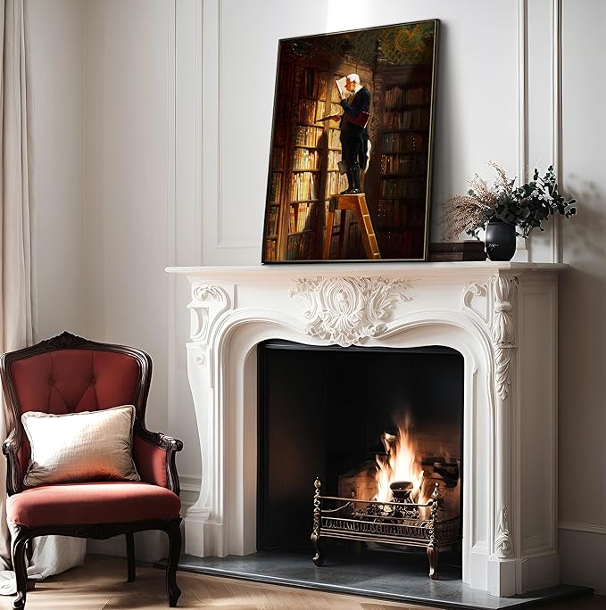 Poster Master Vintage The Bookworm Print - Retro Reading Book Print - Book Lover Art - Library Painting Wall Design - Librarian Art - Great Living Room or Office Decor - 8x10 UNFRAMED Wall Art