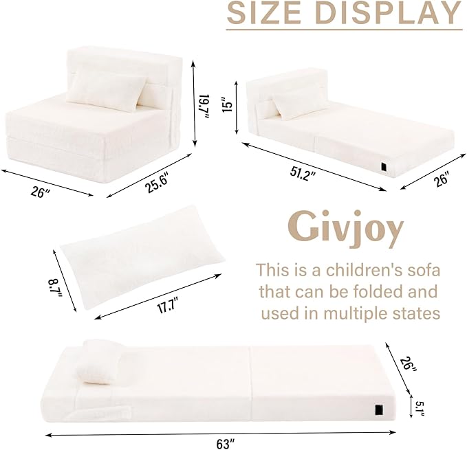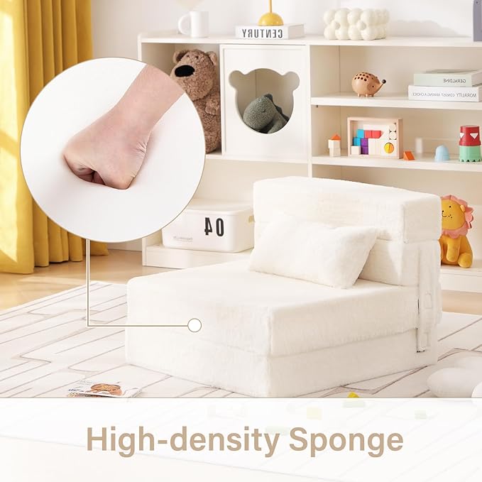 - 【Kid's Folding Chair Bed Requires No Assembly】The kids folding mattress is in vacuum packing. Open the Kids Couch packaging and you will get a soft plush Sofa for your kids. Please allow 4-5 days for the kids sofa couch to take on its original shape or use a clothing steamer to restore its thickness and remove creases quickly.