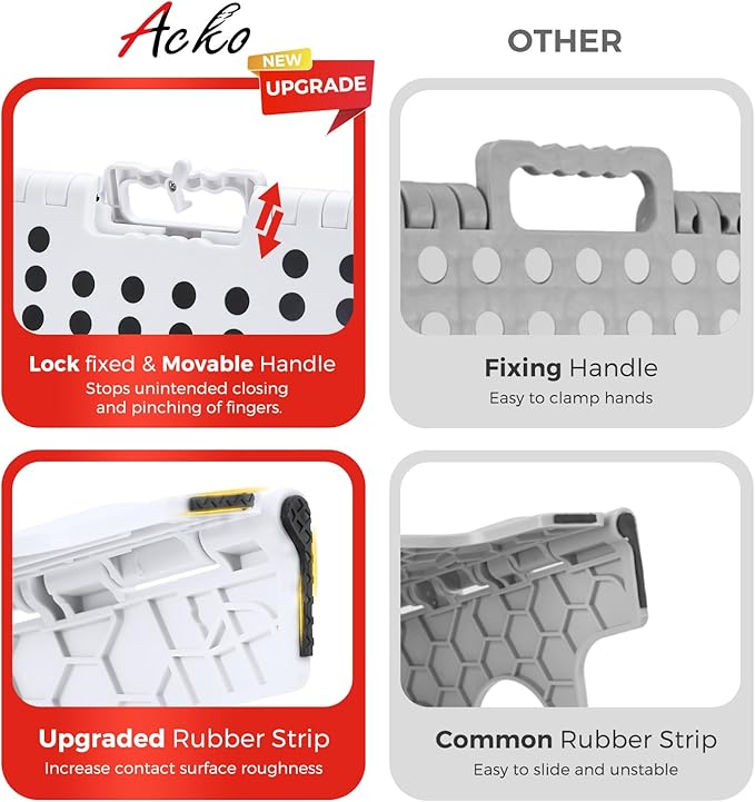 - Safety-Focused Design: Our lightweight folding step stool equipped with a non-slip surface, movable handle and the bottom corners are upgraded to black non-slip dot textured rubber straps to prevent slips and finger traps, improving a secure user experience.