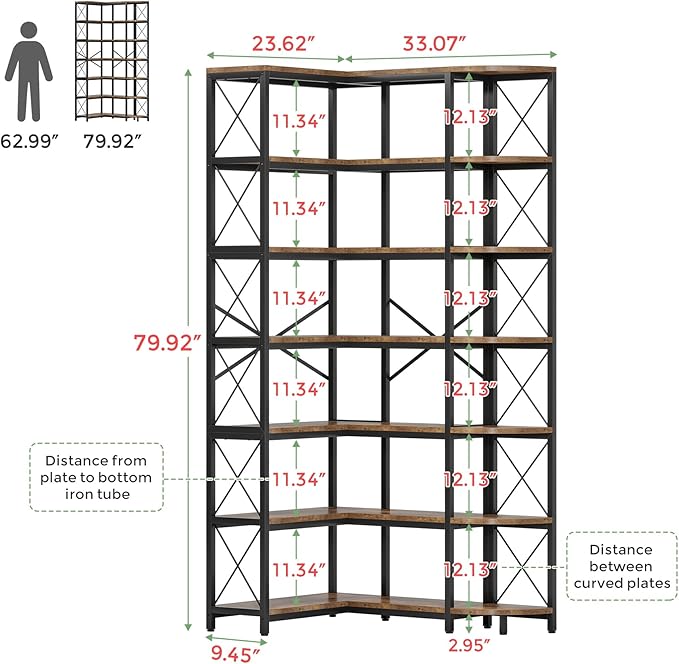 - 【Ample Storage & Versatile Use】: With 7 tiers of storage shelves, this large industrial bookshelf offers plenty of vertical display space for your photo albums, decorations, souvenirs, and potted plants; it can serve as a bookshelf, plant stand, or display shelf in your office, living room, study, or bedroom