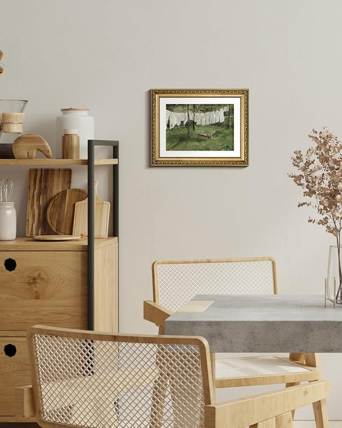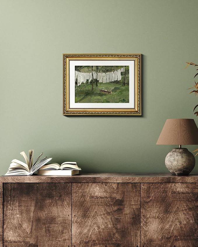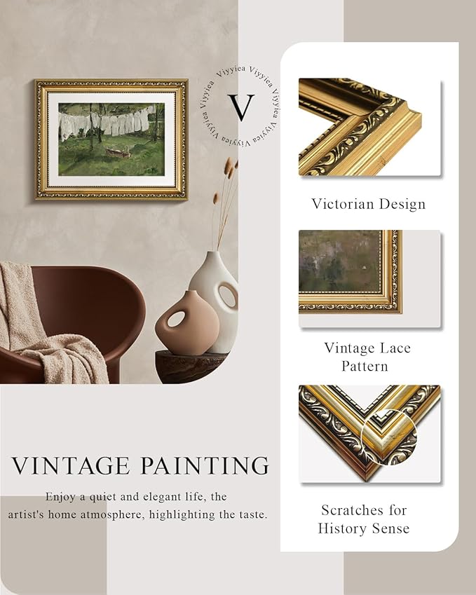 VIYYIEA Gold Framed Wall Art Canvas Print Home Decor Vintage Laundry Room Art Prints Antique Country Oil Painting Green Landscape Wall Decor Bathroom Art Wall Pictures for Living Room Bedroom 11x14in