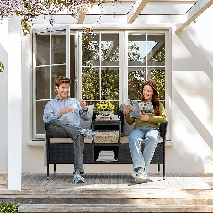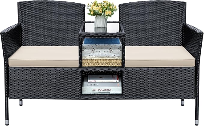- SPACE SAVING DESIGN: Both the top and bottom of the patio loveseat have extra storage space, which can meet your more storage needs, able to store more books, cushions or other things.