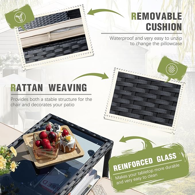 - DURABLE MATERIAL: The material of the loveseat is made of weather and corrosion-resistant PE rattan, which can extend its service life, and the water-resistant cushion can dry quickly after getting wet.
