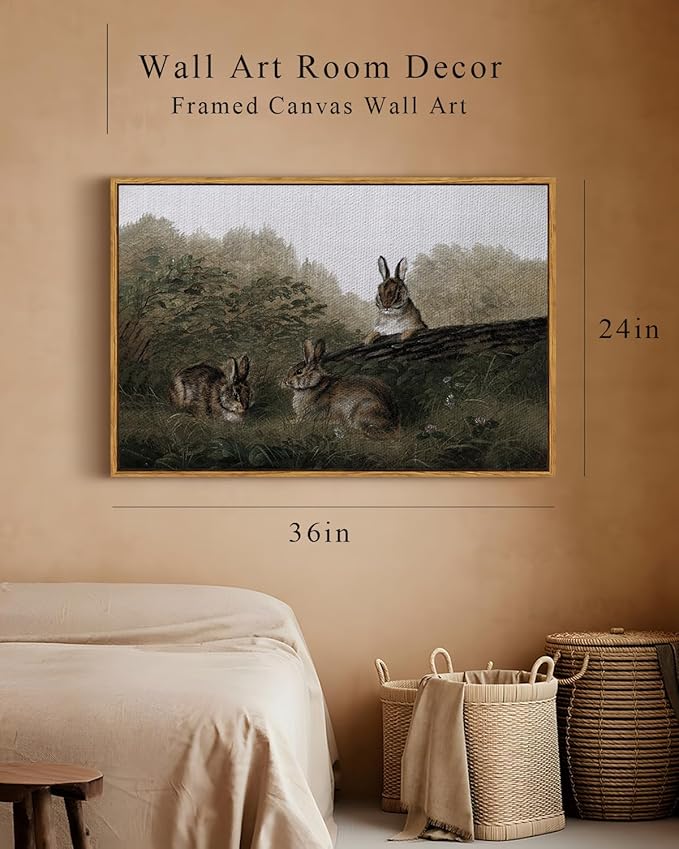 InSimSea Framed Wall Art for Living Room Three Rabbits with Vintage Wall Art Decor Animal Landscape Oil Painting Colorful Multicolor for Living Room Bedroom Office Wall Decor 24x36in
