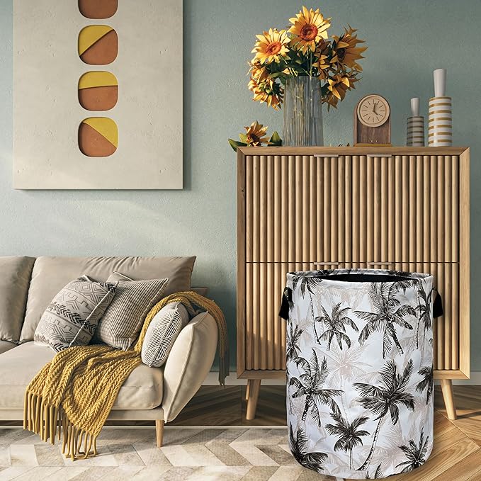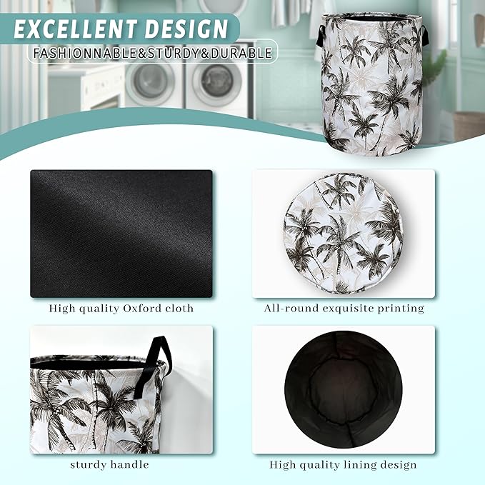 Vintage Tropical Palm Trees Laundry Basket Foldable With Handles Tote Bag Oxford Cloth Colorful Laundry Hamper 18.9"x1 6.5 "Clothe Storage Bucket Toy Organizer For Bathroom/Laundry/Bedroom