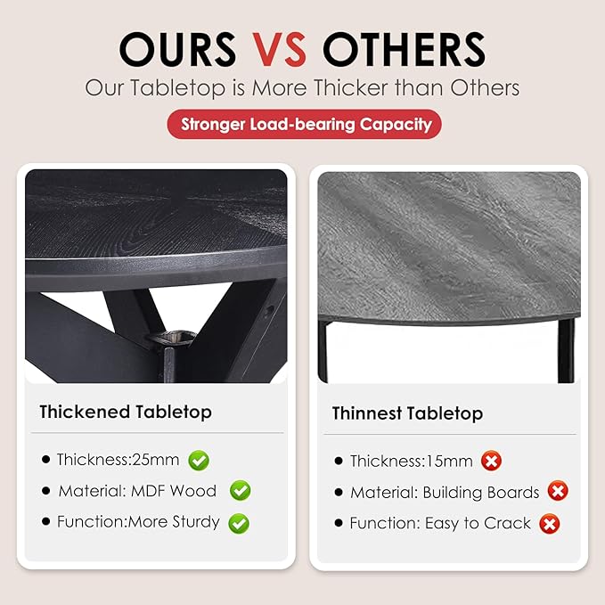 - [Thicken Coffee Tabletop]: The tabletop of this coffee table is more thicker than other tables,the thickness of the tabletop is about 25 mm, it looks very high-end, powerful, The large coffee table can support up to 300 lbs.